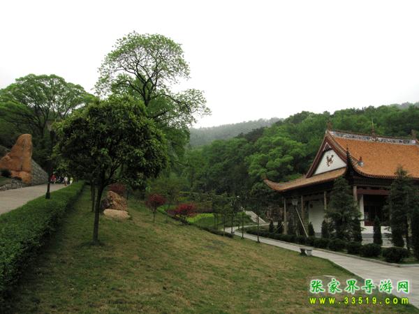 轉(zhuǎn)到祠堂后邊,有一短坡,草色蒼綠,雜有香楓,高不及數(shù)尺。右有一潭,約五尺圓盤(pán),潭水清澈,右岸樟樹(shù)兩棵,挺撥林立,樹(shù)旁瀑布寬約兩尺,高約兩人,水沫飛濺,水擊聲轟轟,如約大壩泄洪。潭之左邊,有一石梯,拾級(jí)而上,就見(jiàn)岳麓山上煙雨蒙蒙,那濃濃的霧水,就像一個(gè)打扮得漂漂亮亮的姑娘披上潔白的婚紗——更加?jì)趁膭?dòng)人。