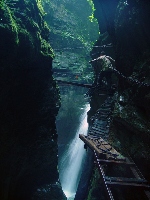 坐龍峽擁有中國第一條特種游道。所有游道均建于峽谷深處,依山取勢,既經(jīng)細(xì)心雕琢聽卻又渾然天成。粗樸的板栗木棧道,可以讓你零距離的親近那一潭碧幽、聽聞山泉叮咚;精巧的跳墩,可以讓你媳戲流泉、觸感溪瀑;原質(zhì)的石坎道,讓你不得不調(diào)動全部的身心能量悉心攀援、感悟峽谷;有驚無險的鐵梯,讓你伴著腳下轟鳴的溪水,在驚怵中體味一份快慰。 出口出的土家山寨,保留了古樸獨特的生活習(xí)俗。一塊臘肉就一口醇香的“苞谷燒”會讓你洗去所有的疲憊,在輕松中憨厚的主人向你講述過去強(qiáng)人出沒的故事