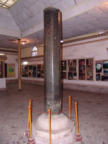 彭士愁戰(zhàn)敗后于后晉天福五年(公元940年)與馬希范議和,把戰(zhàn)爭的經(jīng)過和議和的條款,鐫刻于銅柱之上。銅柱重五千斤,高丈二尺,入土六心,形為八面,中空,內實鉅錢,柱端覆蓋銅頂,銘誓狀于銅柱之上,立于會溪,宋天禧二年(公元1018年)重立時,又羼刻了一些土官銜名。清中葉,柱上銅頂被盜,沉于江心,柱內銅錢亦被人以飴粘錢殆盡。清光緒十一年(公元1885年),永順府知府張曾揚建亭保護。民國年間亭被毀。”銅柱的銅質,精純光潤;八面所鐫顏、柳體陰文,雖經(jīng)千載風雨洗刷,霜雪蝕磨,仍清晰如初。溪州銅柱是研究土家族古代歷史的重要文獻。土家族視銅柱為神物。