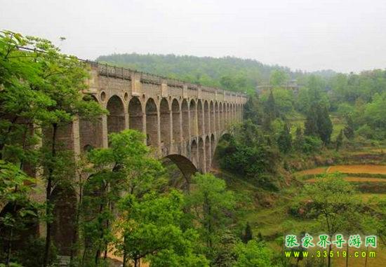 巖旯窠苗寨有中國最大的石拱橋渡槽--巖旯窠大石橋,號(hào)稱“中國的加德橋”(此橋與著名的古羅馬的加德橋比較,功能相同、結(jié)構(gòu)相似,是我國最大石拱橋渡槽之一)。