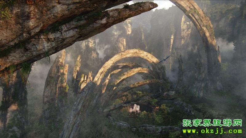 巍巍群山漂浮在天空,云霧繚繞,美麗壯觀……這是電影《阿凡達》中的經(jīng)典場景。阿凡達的全球熱映使人們對這部電影充滿了驚嘆和好奇,而這部影片奇幻的拍攝地到底是在哪里這一問題也引發(fā)了影片熱愛者的紛紛推測。導演卡梅隆的一句“中國元素給《阿凡達》大大增色”不僅勾起了旅游愛好者的向往之心,更是引發(fā)了一場不小的爭論。片中美輪美奐的“哈利路亞山”讓人驚嘆向往,現(xiàn)實版的“哈利路亞山”到底是以黃山還是張家界的武陵源為背景,成了網(wǎng)友和旅游界的熱議焦點。“第42秒出現(xiàn)過張家界的南天一柱,第33分21秒出現(xiàn)過黃石寨的玉屏峰,第55分53秒出現(xiàn)過寶峰湖的瀑布……”在網(wǎng)上,有發(fā)帖者將這些在《阿凡達》影片中出現(xiàn)過的張家界景致一一羅列。通過慢放發(fā)現(xiàn),影片中大概有25分鐘完全是張家界的山水風光。出現(xiàn)多次的是黃石寨前山的南天一柱,金鞭溪的劈山救母出現(xiàn)不低于5次,然而出現(xiàn)最多的還是寶峰湖瀑布和袁家界迷魂臺里面的擎天柱。而張家界和黃山的最大區(qū)別是黃山是花崗巖地貌,上面非常光滑,幾乎沒有植被,而張家界是石英砂巖地貌,上面植被覆蓋非常茂盛。
