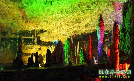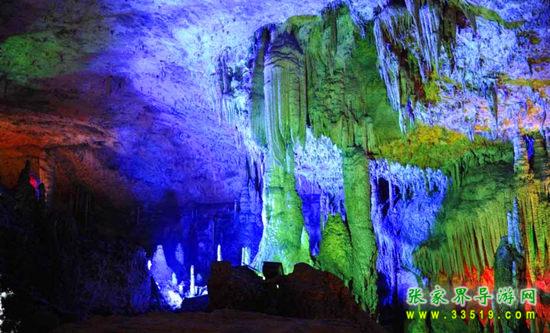 九天洞位于湖南張家界市桑植縣城17公里的利福塔鄉(xiāng),距市區(qū)70公里,距武陵源62公里,因洞內(nèi)有九個(gè)自然天窗九天洞而得名,總面積250公頃,是中國目前發(fā)現(xiàn)的溶洞之最,比號(hào)稱世界第一的利川溶洞大三倍。九天洞內(nèi)空氣清新,冬暖夏凉。整座洞穴分上、中、下三層,有五層不同高度的螺旋式觀景臺(tái),最下層低于地表面400多米。經(jīng)初步探明洞內(nèi)有40個(gè)大廳、3條落差懸殊的陰河、12條瀑布、5座自生橋、10余座洞中山,此外,還有不可勝數(shù)的五光十色的鐘乳石群。在眾多迷人的景觀中尤以九星山、玉宮、水晶宮、九天玄女宮、壽星宮五大奇觀最為著名。