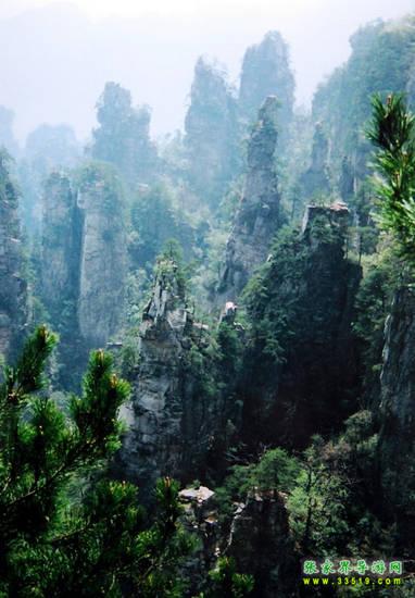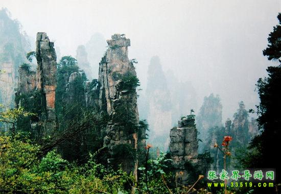數(shù)以千計的奇峰怪石拔地而起森列谷中。在建筑師看來,石峰如塔、如柱、如屏、如樓、如堡、如墻,鱗次節(jié)比、錯落有致,展現(xiàn)了一幅宏偉的建筑藍(lán)圖;在藝術(shù)家看來,石峰似人、似佛、似鳥、似獸、似花、似樹,似瓊樓玉宇,生動逼真唯妙唯肖,似一幅彩色的畫卷;在軍事家看來,石峰是將、是兵,是鼓、是旗、是車、是馬,威武雄壯嚴(yán)陣待發(fā),象一支天降的軍隊(duì)。