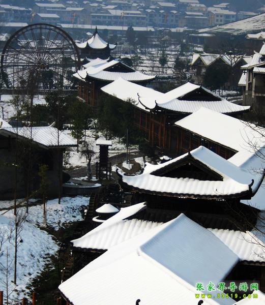 依山傍水而建的土家庭院,總面積有10826.7平方米,形成土家建筑群,分布了商鋪、茶樓、飯店、辦公區(qū)域。哈利路亞音樂廳是廣場中最大的建筑,它采用了全國獨(dú)一無二的斜屋坡面綠化,具有演藝和展示雙重功能,外墻裝飾有流線性的藝術(shù)美感,屋頂綠化與大自然相融,點(diǎn)綴著多色草木,色彩繽紛,形成了“空中花園”的自然觀感。