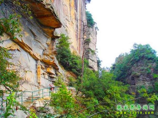 由群仙開宴景點沿石徑蜿蜒而下約200米處,一巨峰于半腰分裂,內(nèi)可行人,長300米,寬0.1-1米。南側(cè)懸崖峭壁,深不見底。北側(cè)石壁高50米,抬頭不見其頂。人行其內(nèi),如置身空中長廊。廊中虬松懸崖,亂云飛渡,山風呼嘯。廊之東、南和西南三面峰立如林,或如城墻,或加堡壘,各呈奇舉。