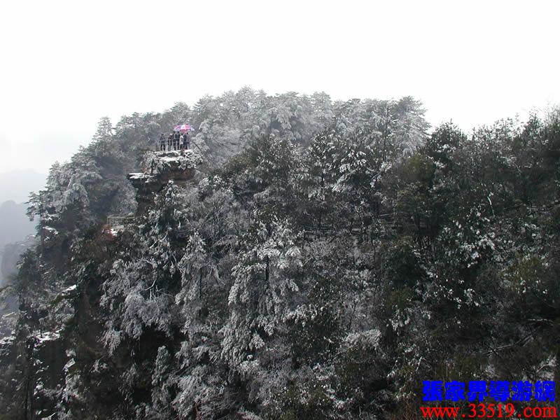 (六奇閣)請(qǐng)各位猜猜,這“六奇”是指哪“六奇”?大多數(shù)講對(duì)了,準(zhǔn)確地說(shuō)是指山奇、水奇、云奇、石奇、動(dòng)物奇、植物奇。“江山留勝跡,我輩復(fù)登臨”;“欲窮千里目,更上一層樓”。站在這里,可以看到袁家界、楊家界、天子山、朝天觀、三姐妹峰