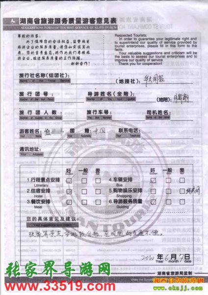 2010年6月7日熊先生旅游質(zhì)量反饋