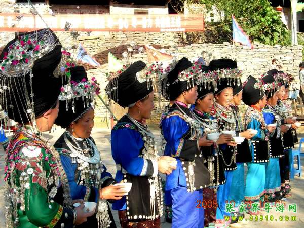 7 在苗王城!滿身銀飾的盛裝苗女會熱情卡歌、攔門禮捧上的是醇美的苗王米酒、青瓦木房里香噴噴的是苗家飯菜、紡車邊老婆婆與編織花帶的少女說的是難懂的苗話、多情黛帕留在英俊小伙臉上的是愛的鍋煙、古樹下迷狂娛神的是神氣的苗老司、赤膊小伙跳的是強悍、狂放的鼓舞、篝火晚會上縱情的是歡歌與笑語、、、、苗王城是迷人的所在!苗王城是醉人的地方??!