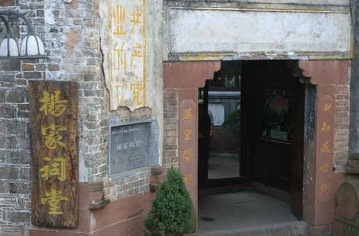 至今在鳳凰保護(hù)最為完整的祠堂,位于縣城東北部古城墻邊。是由太子少保、果勇侯、鎮(zhèn)竿總兵楊芳捐資修建于清道光十六年(1836年)。祠堂由大門、戲臺、過亭、廊房、正廳、廂房組成。