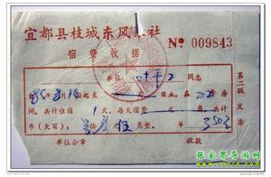 8月14日下午3時,乘坐一輛很破舊的長途車,約3小時顛簸到達(dá)宜都枝城鎮(zhèn),即那時通車不久的枝柳鐵路起點,每人2.3元。車票上還印著“最高指示”。
