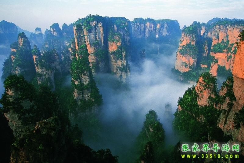 第二天早上,我們參觀了袁家界的風景,其中最有名的當然數(shù)天下第一橋,這是由兩座巖石山的山頂自然生長在一起,非人所能為也。天下第一橋的稱號當之無愧啊。當然在袁家界,后花園也是不能不看的。張家界號稱“峰三千,水八百”,在這里你就能明顯的感覺到這句話的前半句是那么的實在??赐?a class="insidelink" href="http://m.qkgfd.com/" title="張家界">張家界的核心袁家界,我們乘車到了天子山(張家界景區(qū)內(nèi)的最高的地方)。玩了賀龍公園、御筆峰、仙女散花、西海、石船出海、仙人橋、天子廟、十里畫廊、一步難行。不巧的是,那天山上下了一點陣雨,雨后一條彩虹掛在天上,更重要的是山上起了一點霧,使整座山都籠罩在霧中,若隱若現(xiàn),看上去就象是在云海中,好象老天特地配合我們似的,難得一見的西海等正好被我們趕上了。江導告訴我們,這樣的機會是很難得的,可能是張家界為了感謝我的再次到來,給了我一個特別的禮物吧。我大笑。晚上趕到昨天住的地方去住宿。不提。