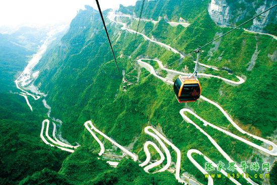 登天門山不需要爬山,至位于張家界市區(qū)的天門山索道下站,乘世界最長(zhǎng)高山客運(yùn)索道—天門山索道(長(zhǎng)7.5公里)直達(dá)山頂,沿途可先鳥瞰美麗山城的醉人景 致,再飽覽清新靜謐的鄉(xiāng)村田園,然后緩緩飛渡進(jìn)奇峰險(xiǎn)壑的懷抱中,在山尖與陡崖之上不斷爬升,體驗(yàn)騰云飛翔的刺激與震撼,30分鐘到達(dá)天門山頂原始空中花園。